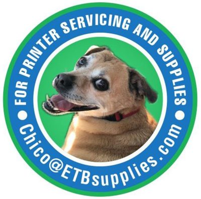 Servicing Hi I’m Chico your ETB Service Manager. If you have an issue with any of your printers such as:making strange noisespoor print outsneeds a maintenance kittoner dust is everywherepoor communication from computer to printeror just needs a cleaningthen fill out the form and I will send out one of our amazing ETB Technicians for you ASAP. Tell me about your printer issue Company Name(Required) Contact Name(Required) Email(Required) Phone(Required)Make and model of printer(Required) Issue(Required)Would you like a couple of my Chico stickers to stick on your printers? Yes No Please Confirm You Are Not a RobotPhoneThis field is for validation purposes and should be left unchanged.